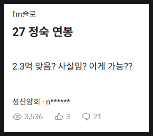 방송에서 보여준 정숙의 모습을 보면 경제적 여유가 느껴진다. 실제로 정숙님이 다니는 회사의 연봉이 한 커뮤니티에서 2.3억 정도라는 글과 댖글이 있어 화제입니다. 또한 나는솔로 출연시 제네시스 G80을 운전하는 모습에서 안정적인 경제력이 엿보인다. 이는 단순한 명품 과시가 아니라 자신의 노력으로 쌓아올린 성과에 대한 자신감의 표현으로 보인다.