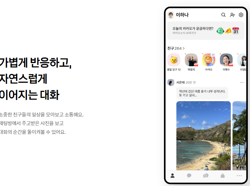 - 친구탭 피드화 → SNS 감성 강화