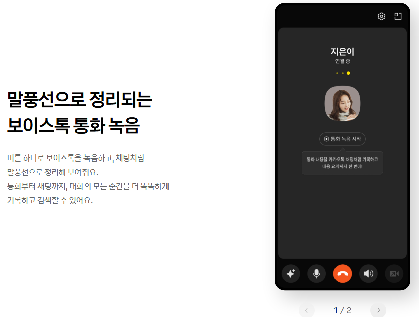 | AI 통합 | AI 카나나, 챗GPT 탑재. 대화 요약, 통화 요약, 검색 강화 |